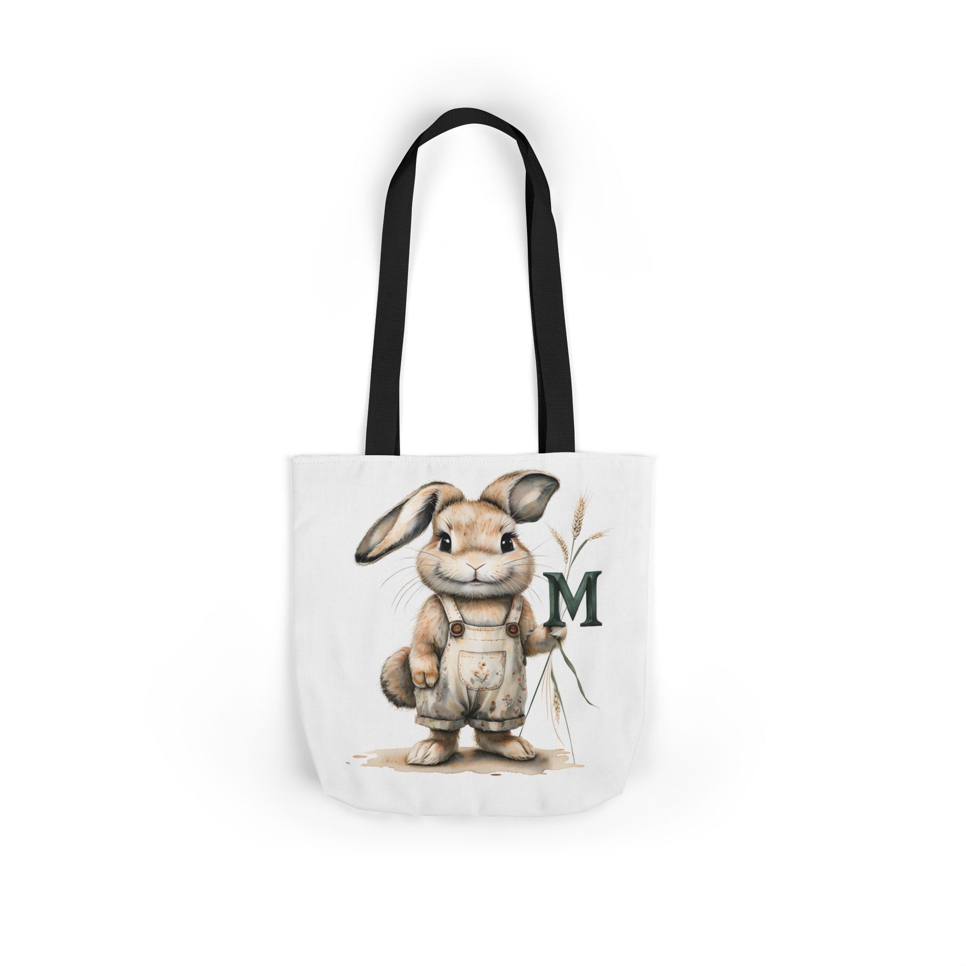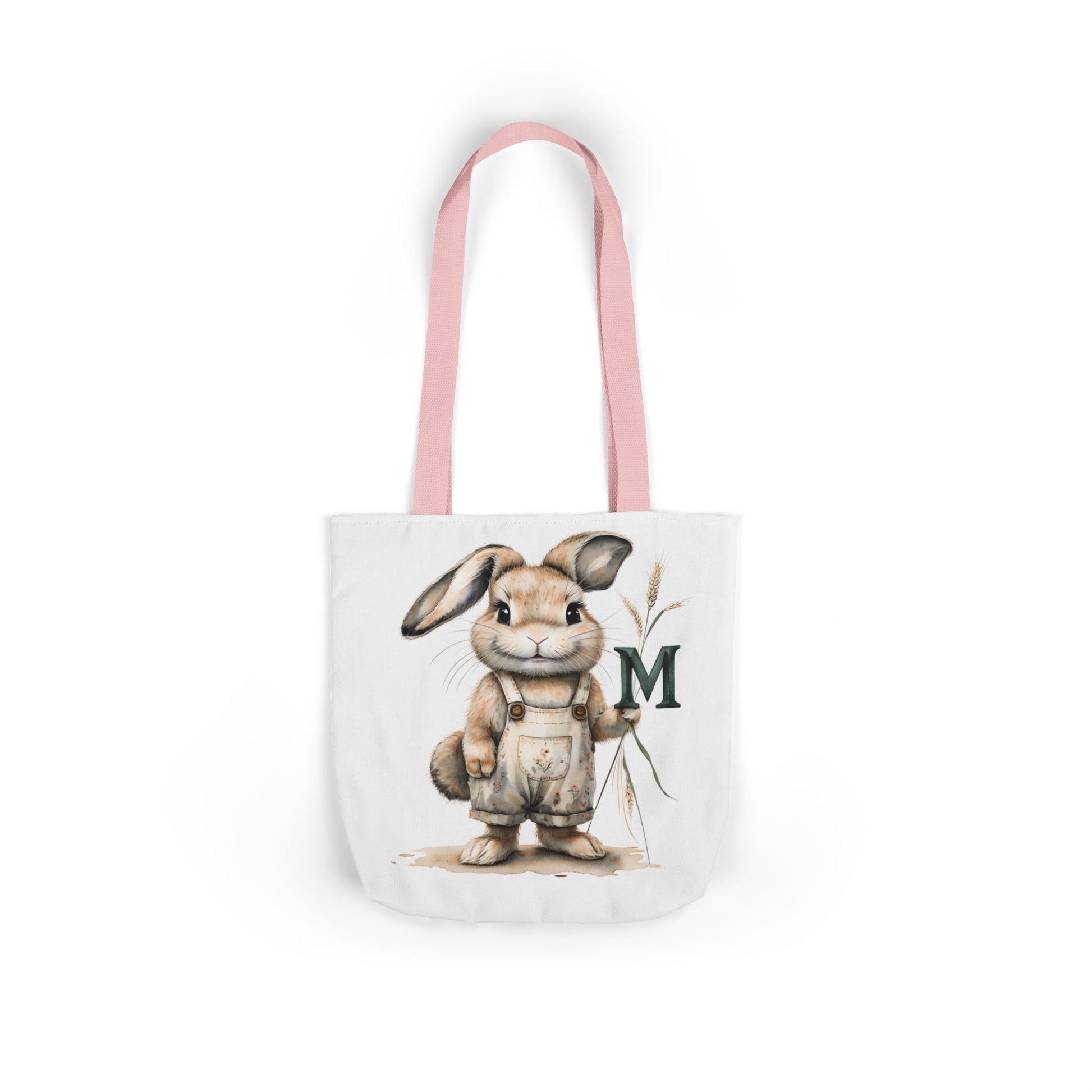 Adorable Letter M Bunny Canvas Tote Bag with 5-Color Straps, Perfect for Spring, Easter, Gift for Rabbit Lovers, Cute Eco-Friendly Bag