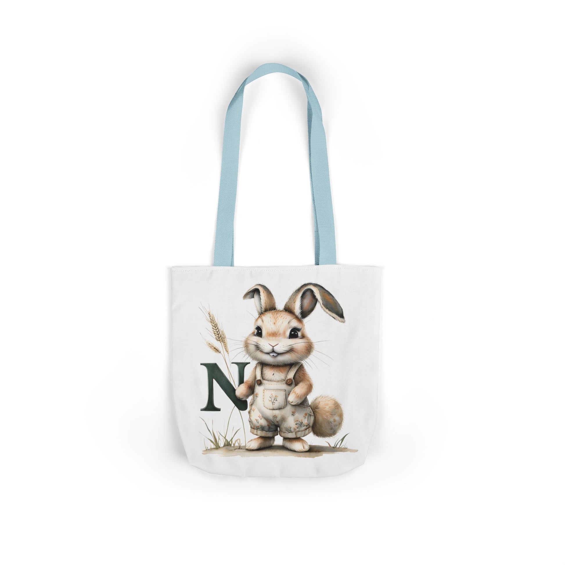 Adorable Letter N Bunny Canvas Tote Bag, Eco-Friendly Shopping Bag, Easter Gift, Cute Animal Tote, Custom Rabbit Bag, Nursery