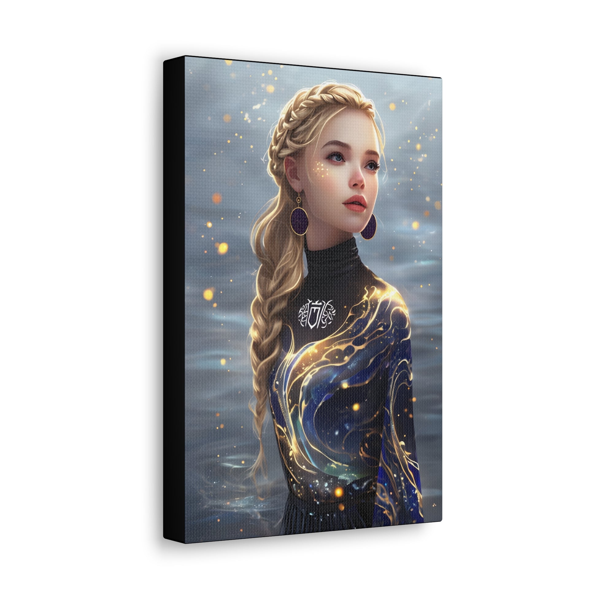 Elegant canvas featuring a young woman in ethereal attire against a misty water background, adding a dreamy and mystical vibe to any space. Perfect for art enthusiasts, home decorators, and those looking for a serene atmosphere. Ideal for gifting during birthdays, anniversaries, and housewarmings.