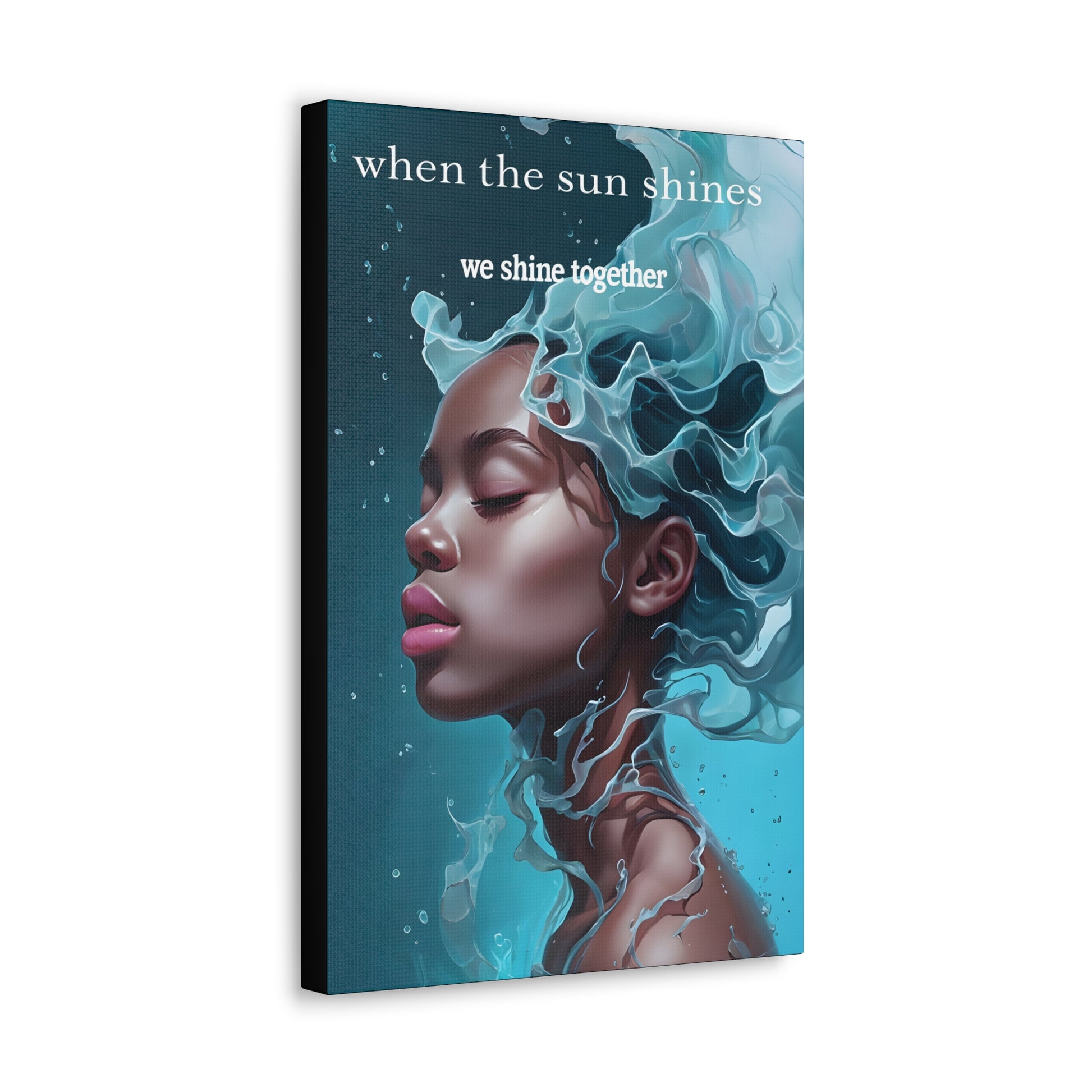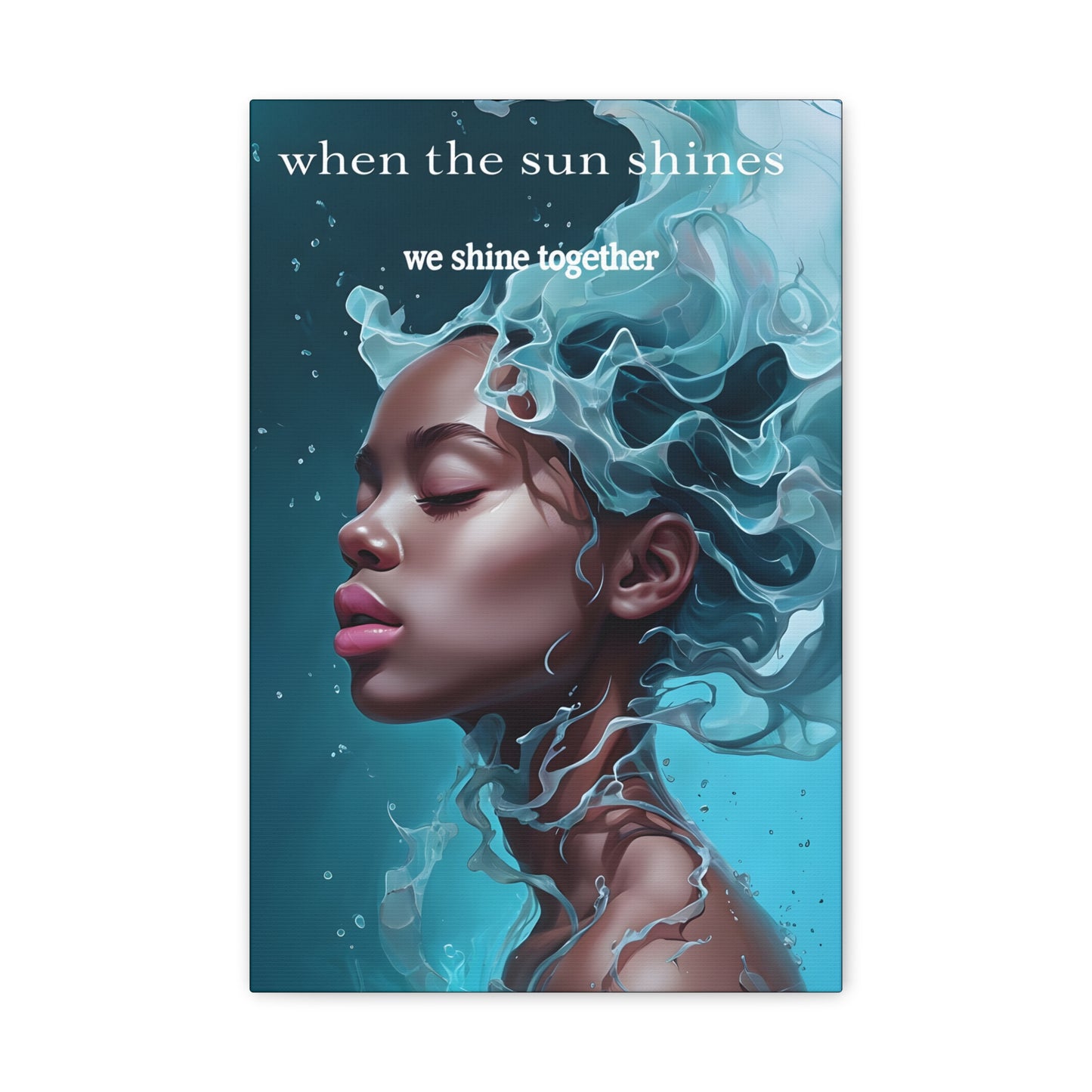 This canvas print features a vibrant and inspiring quote 'when the sun shines we shine together' by Rhianna. It brings a positive and uplifting vibe to any space, perfect for those who appreciate motivational quotes and music lyrics. Ideal for decorating bedrooms, home offices, or music-inspired spaces. Great for gift-giving on birthdays, holidays, or as a housewarming present.