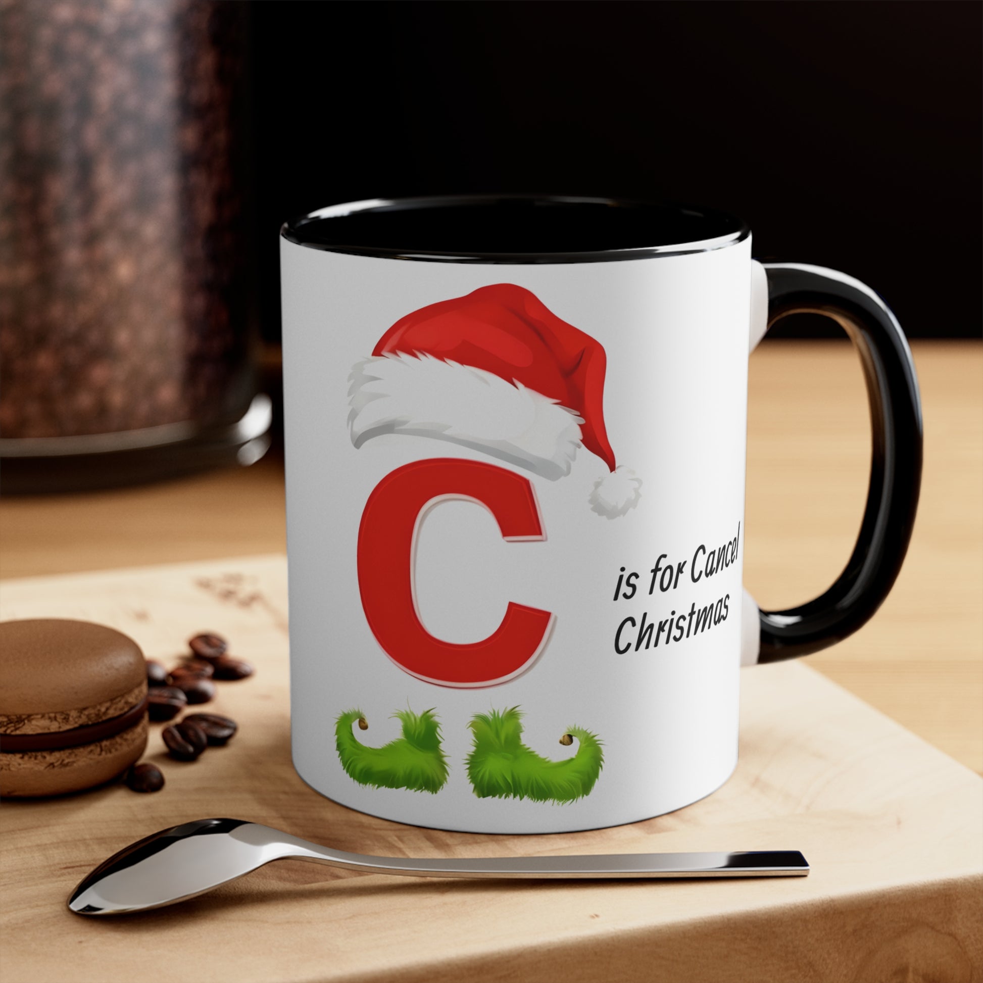Christmas Letter C Mug — "C is for Cancel Christmas" Funny Holiday Coffee Cup