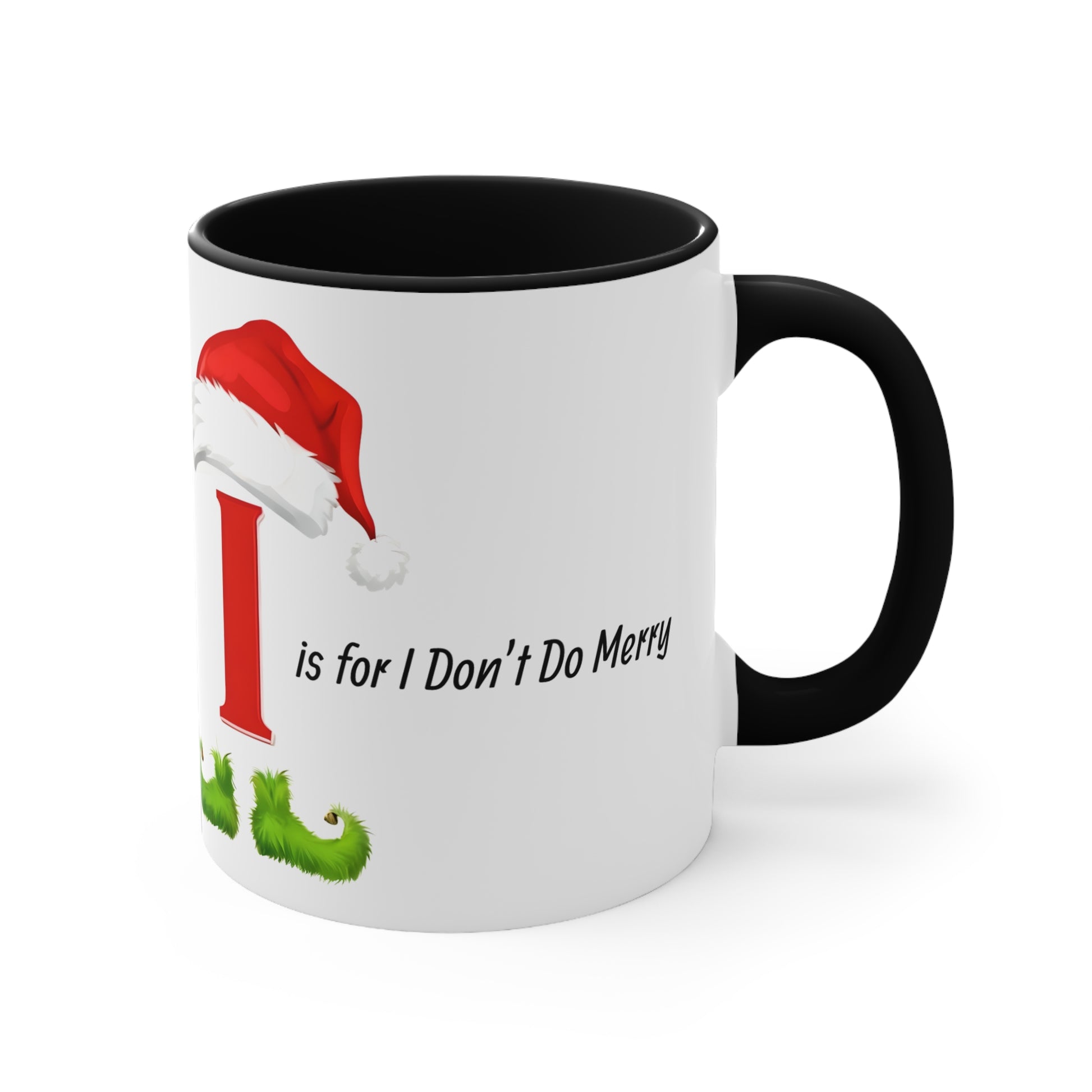 Christmas Letter I Mug — "I is for I Don't Do Merry" Funny Holiday Coffee Cup