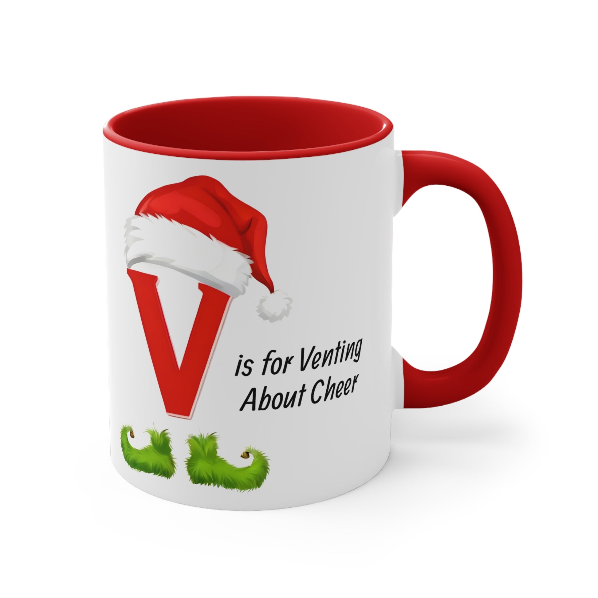 Christmas Letter V Mug — "V is for Venting About Cheer" Funny Holiday Coffee Cup