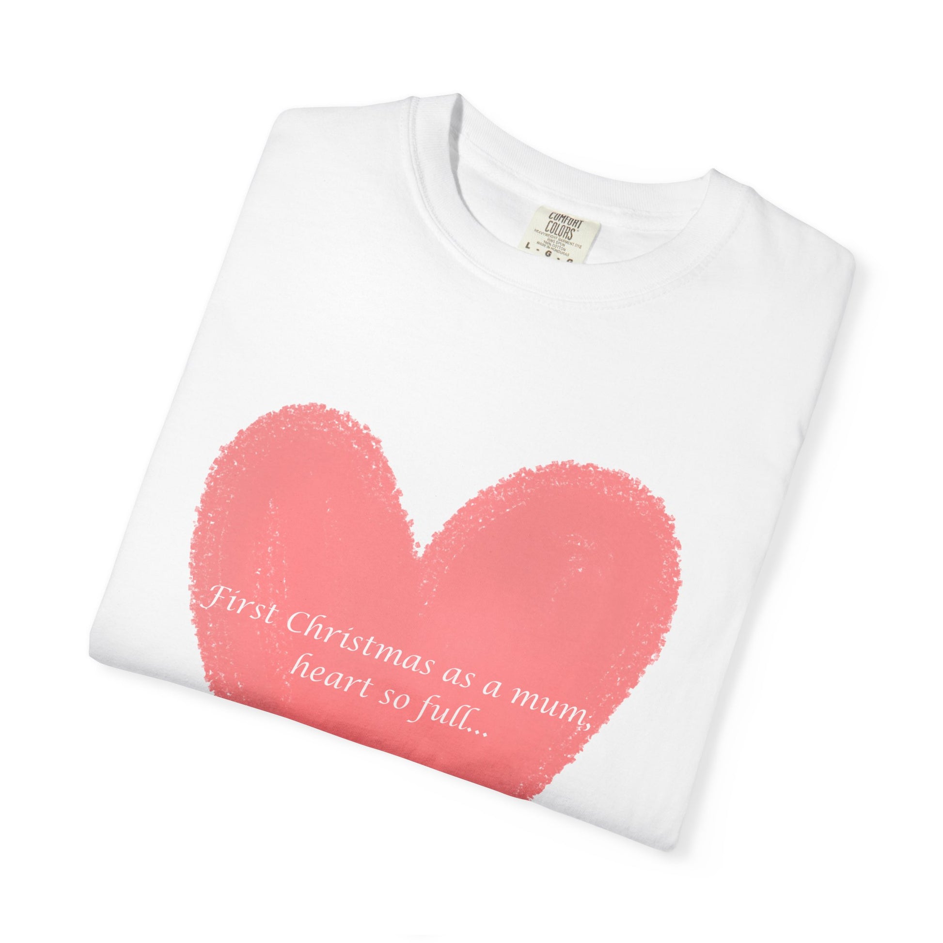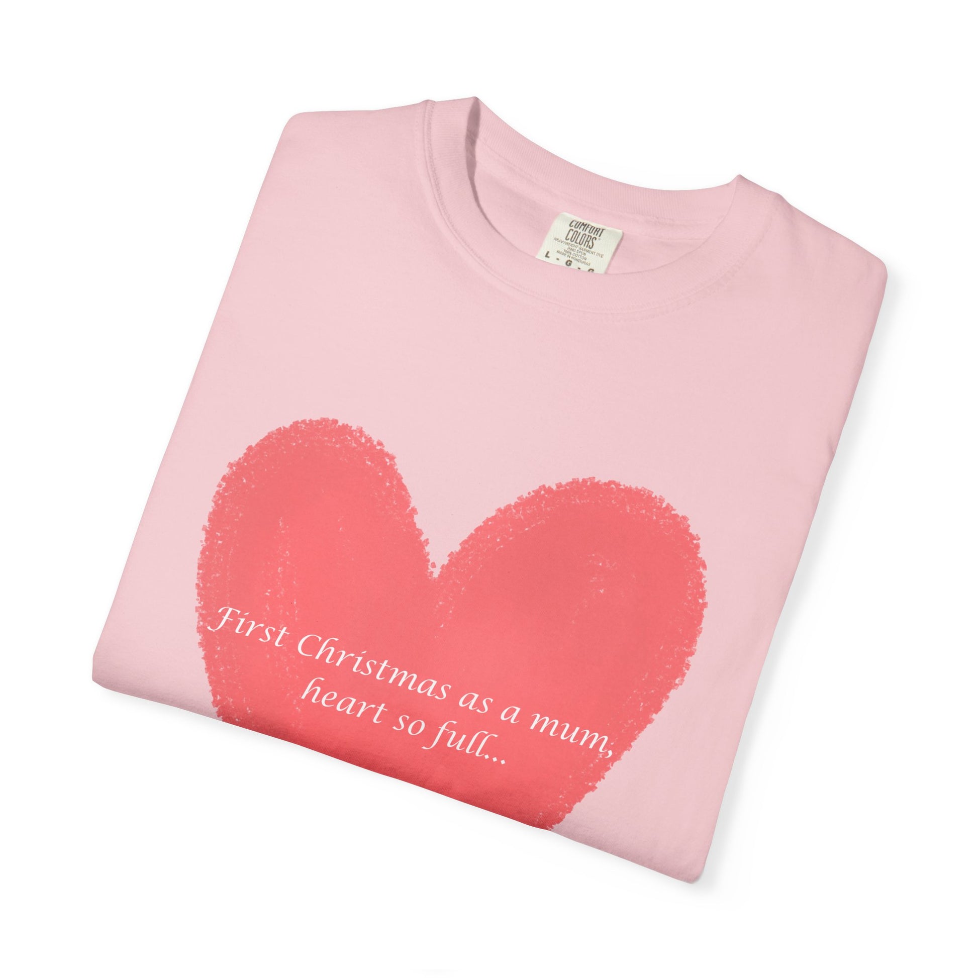 First Christmas as a Mum..Heart Brushstroke T‑Shirt — Pink Painted Heart Graphic Tee