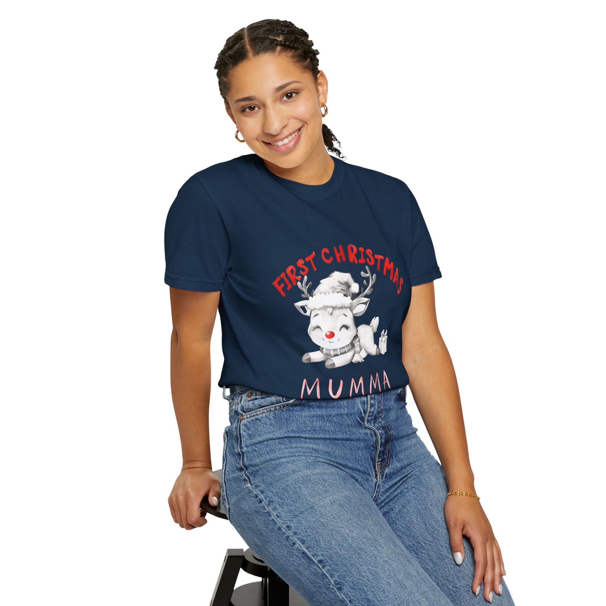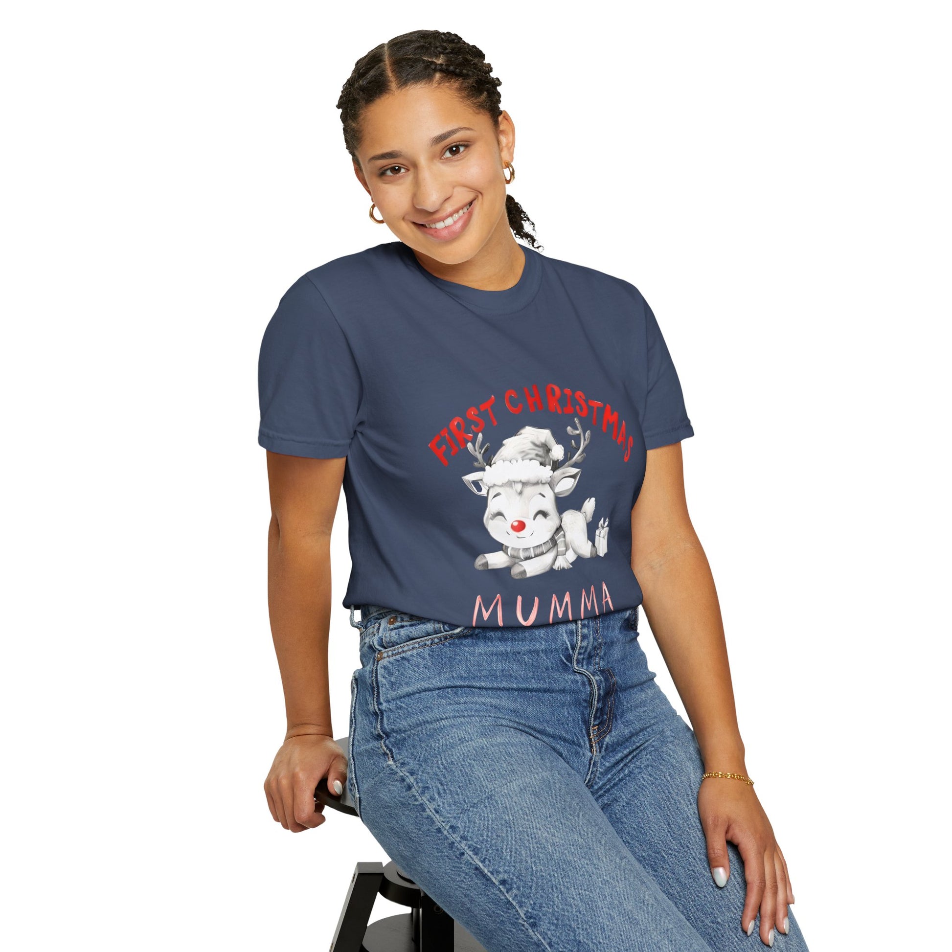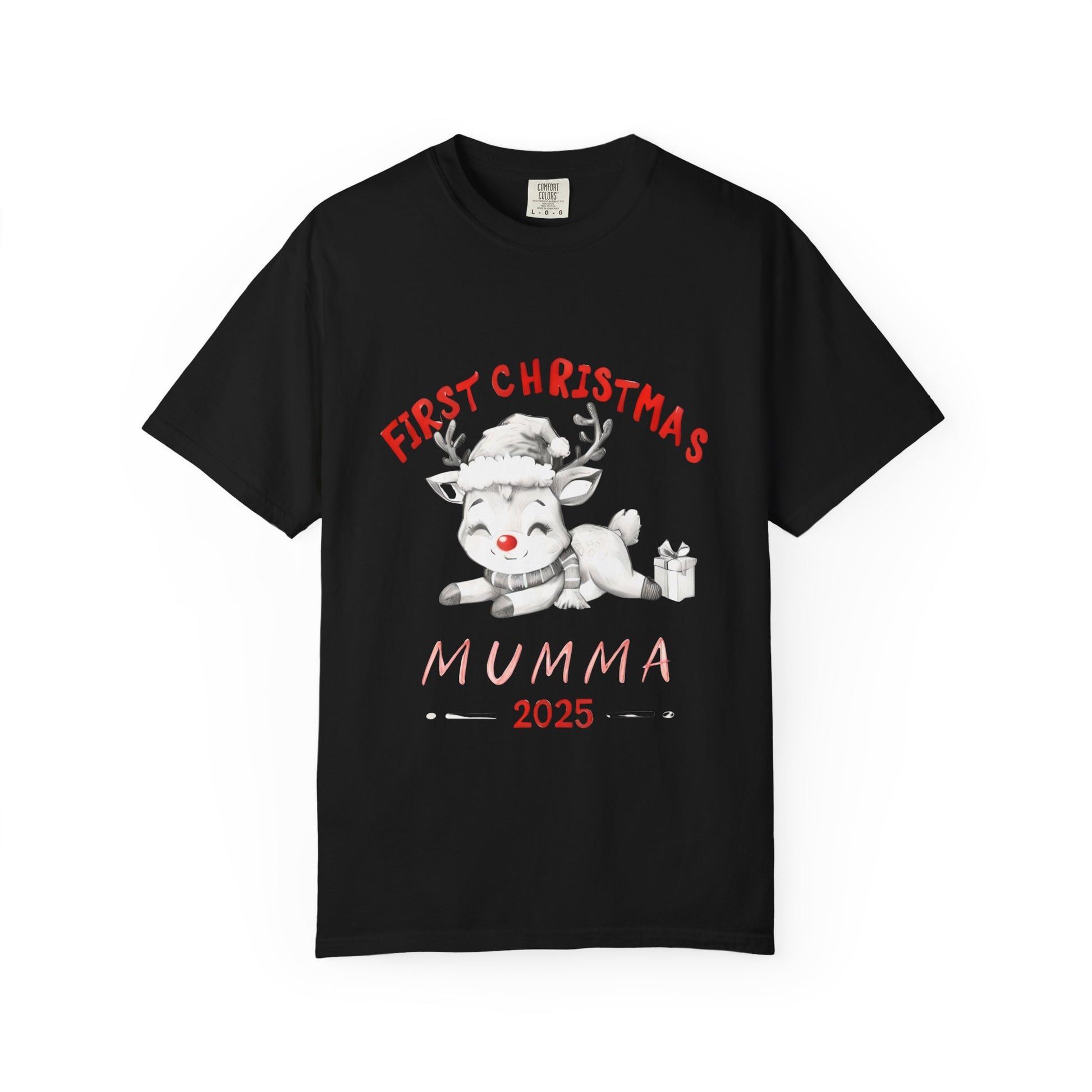 First Christmas Mumma 2025 T-Shirt — Baby's First Christmas Reindeer Tee