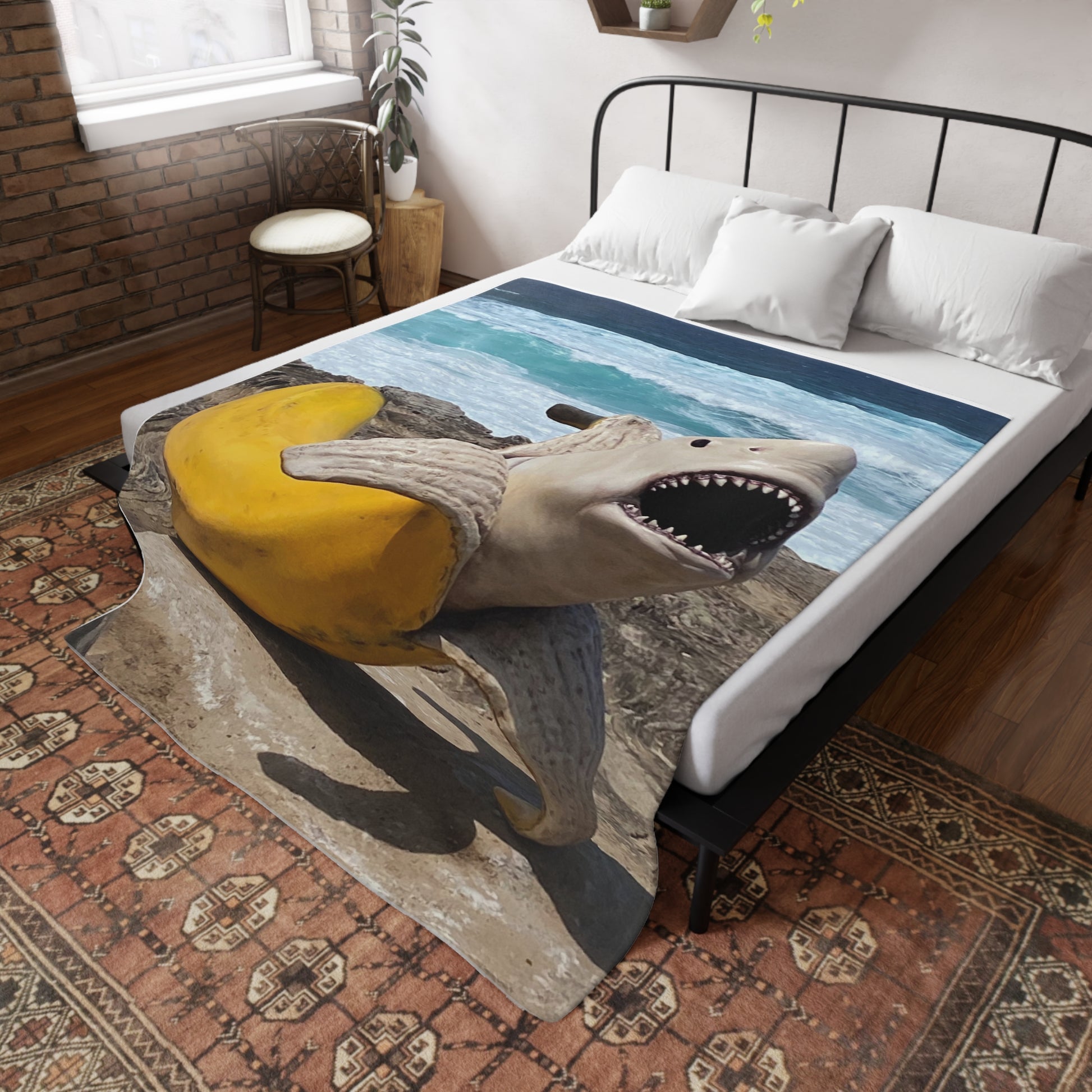 Funny Banana Shark Plush Fleece Blanket, Cozy Throw Blanket for Home, Quirky Gift for Beach Lovers, Summer Decor, Unique Shark Gift