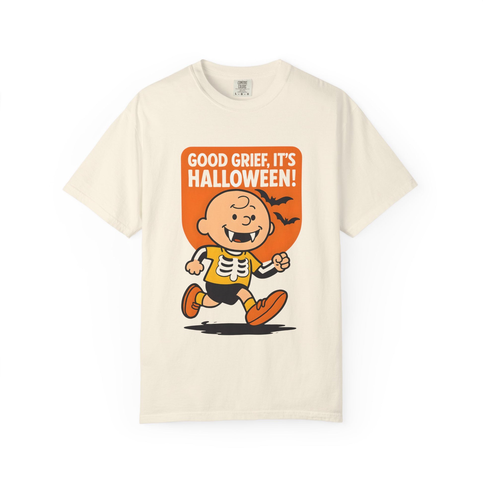 Good Grief its Halloween Charlie unisex t-shirt that exudes a spooky and festive vibe, perfect for Halloween enthusiasts looking to add a touch of whimsy to their wardrobe. This garment-dyed tee is comfortable for casual wear and made with high-quality US cotton for long-lasting comfort. Ideal for adults, this t-shirt is great for Halloween celebrations and themed parties.