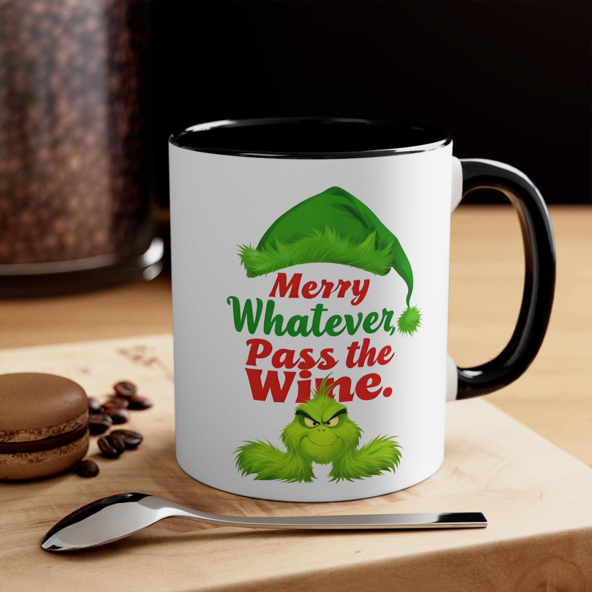 Mug - Merry Whatever, Pass the Wine - Colorful Accent 11oz