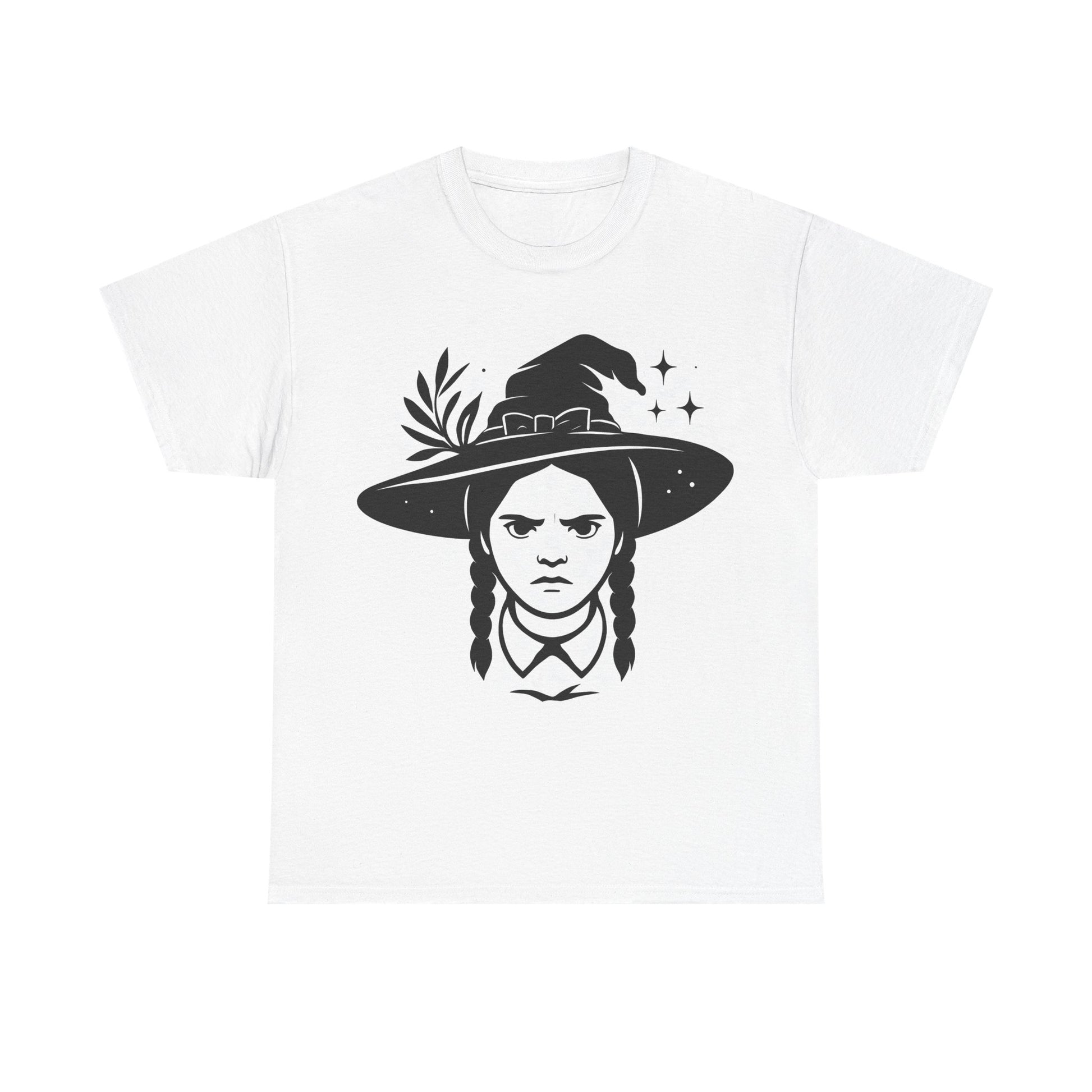 Wednesday-Inspired Unisex Heavy Cotton Tee, Witchy Charm Shirt, Halloween Apparel, Alternative Fashion, Gift for Fans, Casual Wear